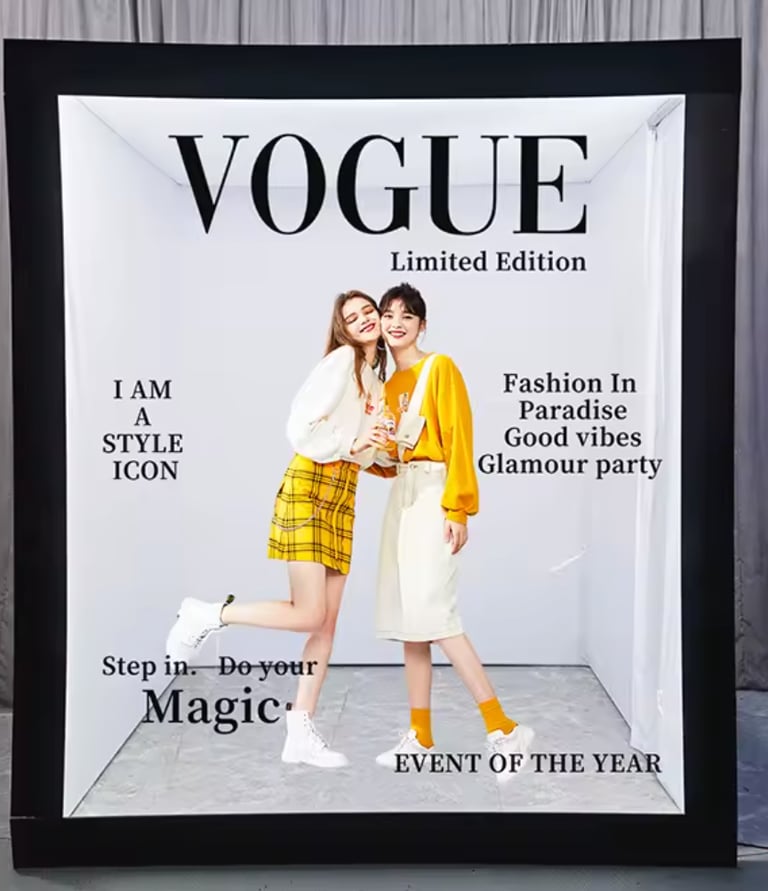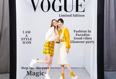 Creamos experiencias memorables con nuestras cabinas de fotos estilo Portada de Revistas, especial para eventos únicos y llenos de glamour.